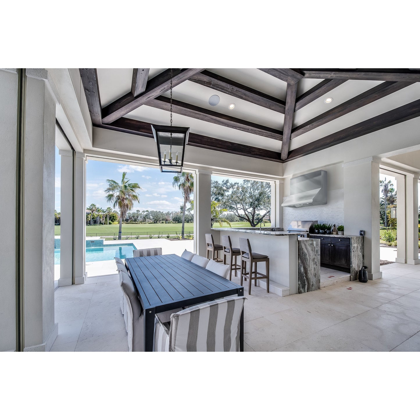 The seamless welding and gleaming polished exterior, plus the stylish beveled front rim and backlit knob controls (that recess out of sight), deliver an elevated Italian design for outdoor cooking. Also, LED lighting will brilliantly illuminate the cooking area at night and last the life of the hood. Capri is equipped with dual sets of angled stainless steel professional baffle filters, that provide exceptional air capture and a 1200 cfm blower has the power to do the job. The extra deep 32” hood body can be complimented with an optional 3” spacer that will extend the depth to 35” for added capture efficiency, plus optional 12” and 6” duct covers are available to reach any ceiling height.