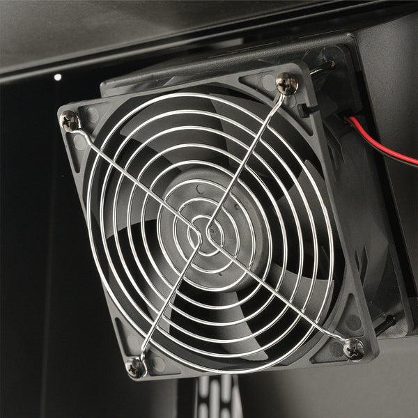 With the push of a button, the digitally controlled fan moves air flow from the hopper to the cooking chamber and maintains the desired cooking temperature.