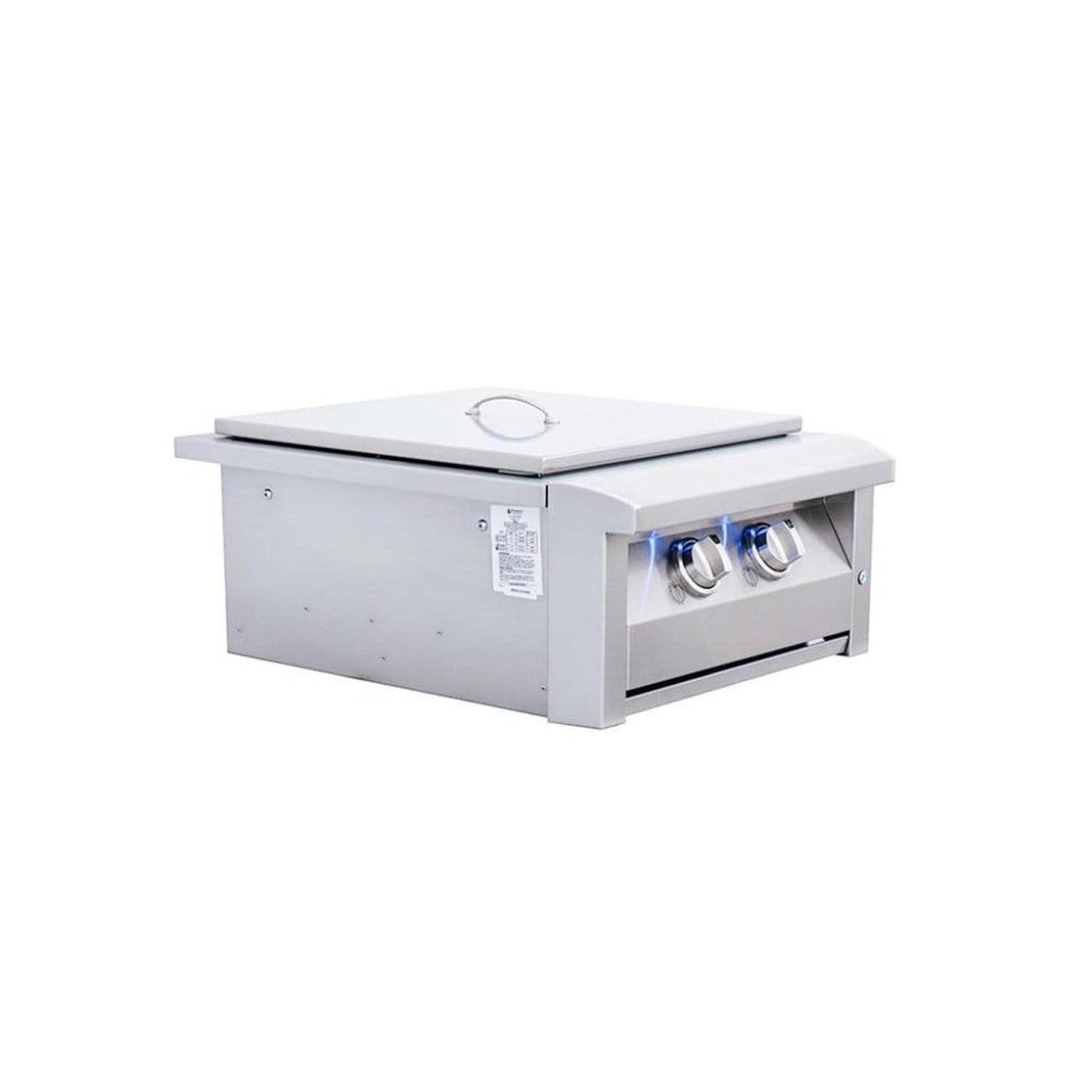 Bring a little bit of your indoor kitchen outdoors. The ASB3 is constructed of 304 stainless steel construction for maximum strength and stability. This side burner features one Solid Brass inner burner and 1 Stainless Steel outer burner for a total of 60,000 BTUs, blue LED lights, and a removable wok ring for cooking with round bottom pots, pans, and woks perfect for sauces or dips.