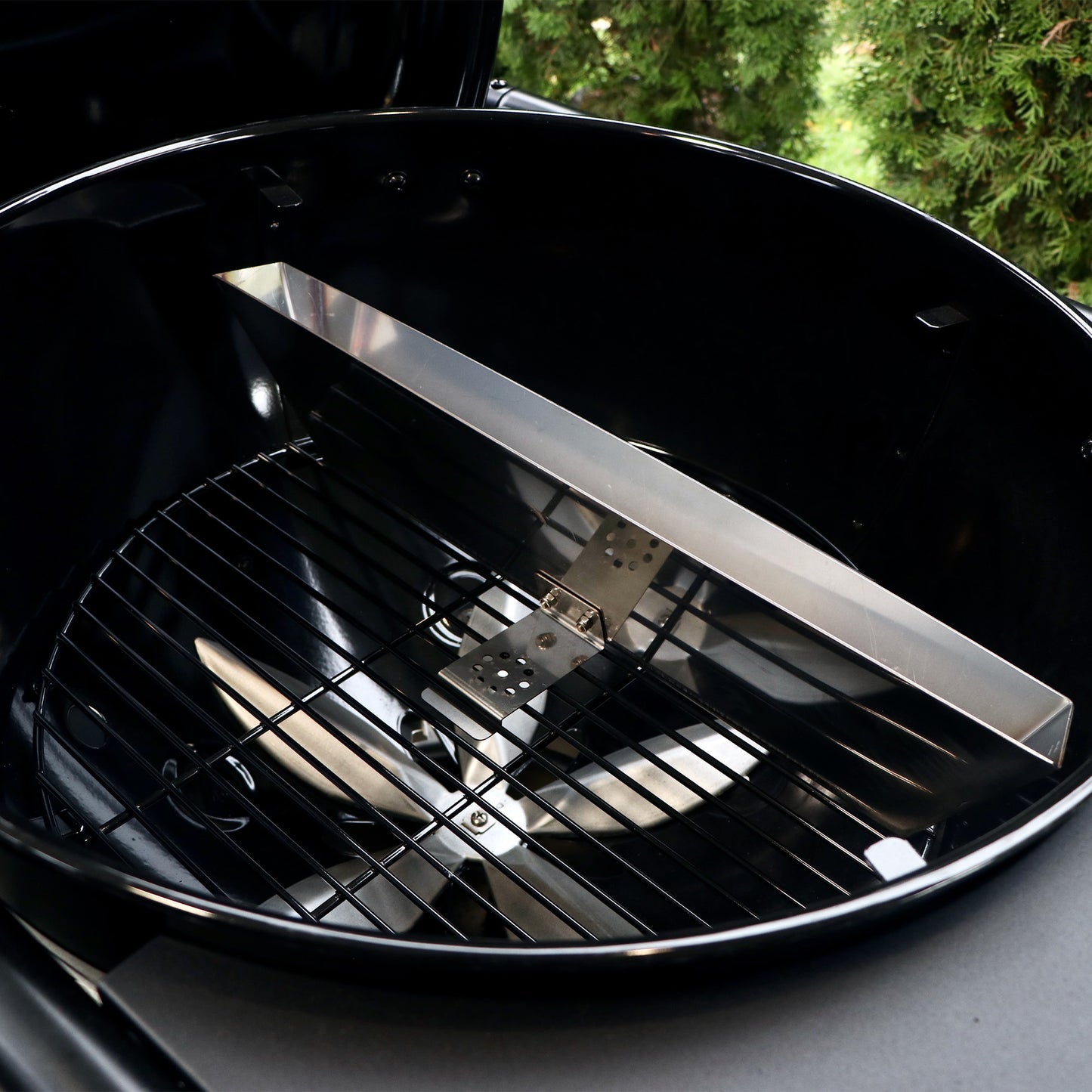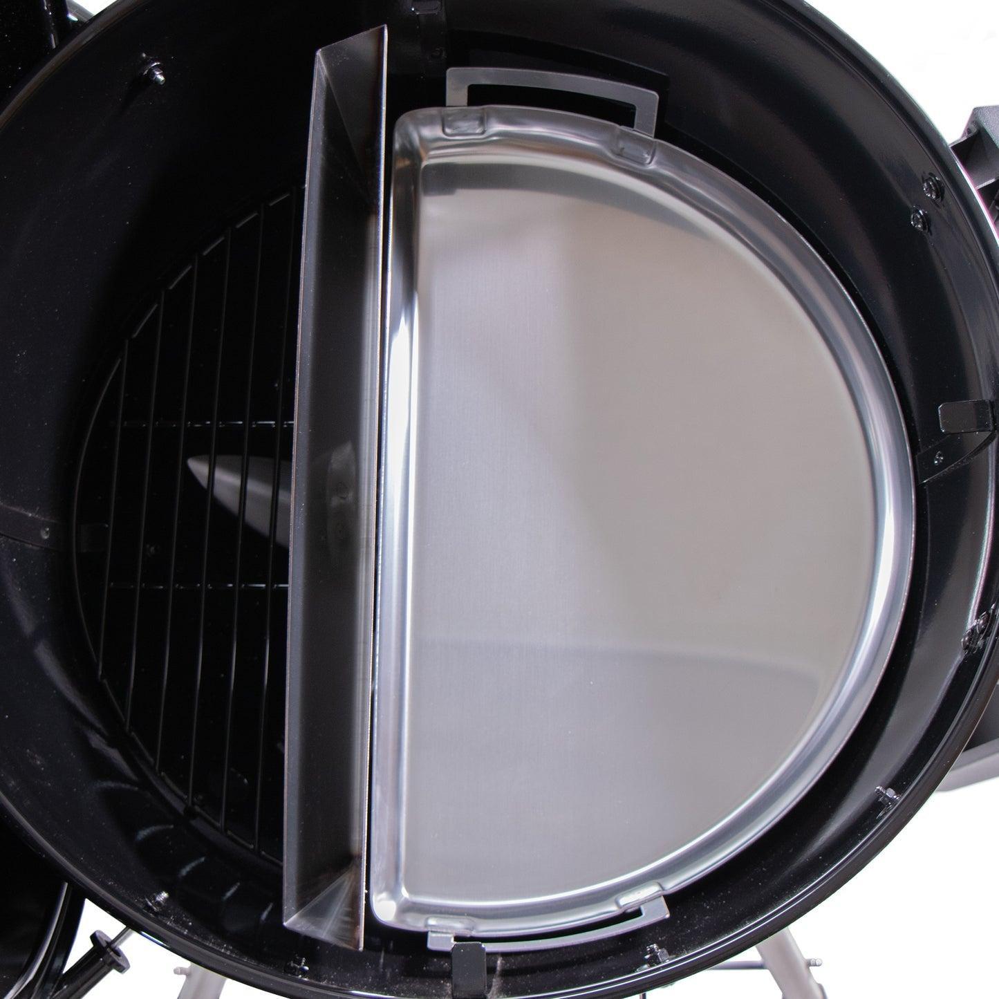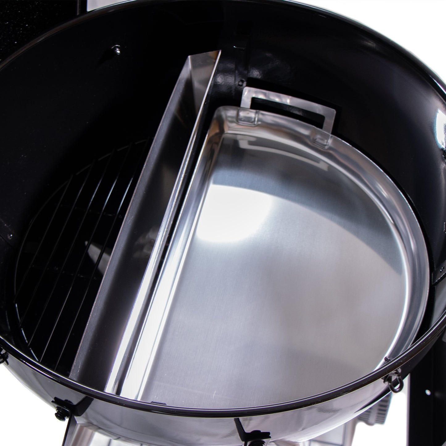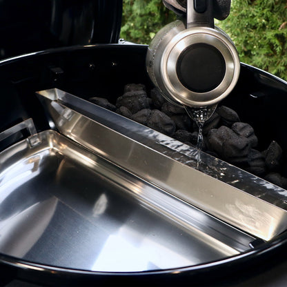 The Drip 'N Divide combines two essential accessories, the Drip 'N Griddle and the Water Reservoir/Pan. This pair offers unparalleled cooking versatility for your kettle.