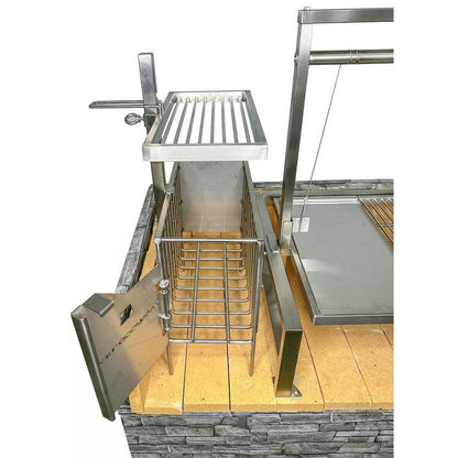 Tagwood BBQ Argentine Santa Maria BBQ09SS 40" Insert Style Stainless Steel Wood Fire and Charcoal Gaucho Grill With Firebricks, Round Grate and Extended Right Sided Height Adjustable System